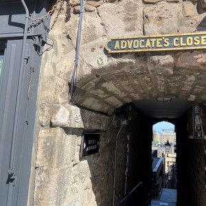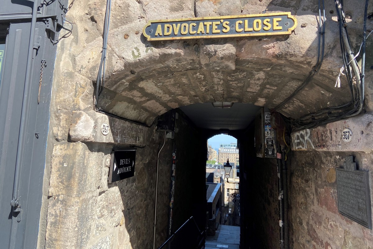 Advocates Close – go on take that picture! It is without doubt one of the best closes on the Royal Mile for three reasons! One, look down this close for a wonderful view of Princes St and the Sir Walter Scott monument (1865). Two, it is just lovely to explore this narrow close. Three, it houses one of our favourite bar and kitchens in the Old Town - The Devil’s Advocate www.devilsadvocateedinburgh.co.uk it serves fabulous food and drink including a fine whisky bar!